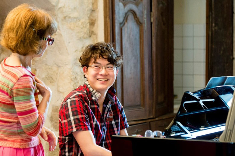 C’est très joyeux et très sérieux aussi. Les élèves, comme les professeurs, sont logés chez les habitants. Il y a une générosité du village qui s’implique dans l’accueil, dans l’organisation. C’est rare. C’est responsabilisant. Je connais d’autres stages où les élèves sont dans des dortoirs ou doivent se débrouiller. Et ce n’est pas la même relation, évidemment. Il y a un côté familial. On forme une équipe le temps du stage. Et le concert de fin de stage à l’Église qui est très belle, leur permet de jouer sur un piano de concert avec un public, sans palmarès. Je sens entre eux une forme de solidarité. Il y a des liens qui se tissent et perdurent. C’est humainement très riche.