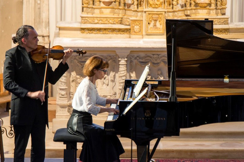 J’aime énormément cette église. J’y ai vécu énormément d’émotions. En concert, lors des concerts d’élèves. Et je trouve que jouer dans des lieux historiques, qui ne sont pas conçus à priori pour ça, mais qui sont beaux, qui ont un vécu, qui sont chargés d’humanité d’une certaine façon, c’est porteur aussi, c’est inspirant. Je trouve même ça rassurant par rapport au trac. Ce n’est pas le même trac qu’on ressent dans des endroits comme ça… où le cahier des charges est moins normé. Il y a une forme de paix dans ces lieux-là. Le public aussi est différent. C’est un temps estival, un temps de vacances. L’écoute est différente. Les spectateurs sont plus disponibles, plus détendus. Ils viennent dans ces festivals avec les oreilles un peu plus ouvertes. Ils sont plus proches de la nature dans la journée. Et tout ça, ça contribue à une certaine sérénité. Il n’y a le stress de la ville, du transport. On ne se prend pas la tête avant pour garer sa voiture.